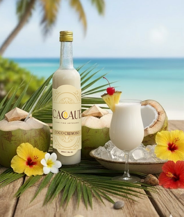 Buscando traduzir tudo isso numa bebida que oferecesse uma memória afetiva, a Cacauê desenvolveu o licor cremoso de coco, ideal para compartilhar com amigos